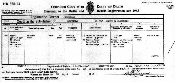 Death Certificate of William 'Grampy' Higgs.