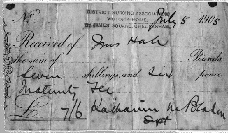 Receipt for maternity fee for attendance at birth of Albert Edward Spencer Hale